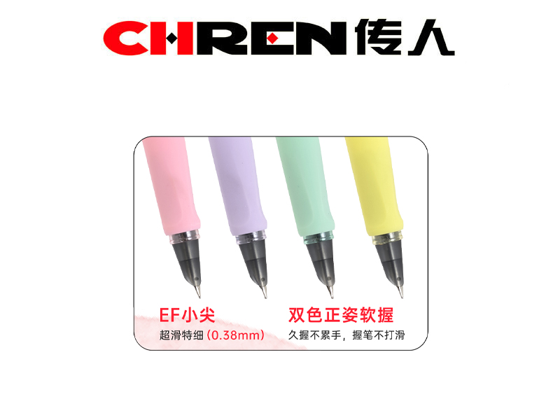 "传人乐握"正姿软握设计,久握不累手,握笔不打滑;"果之物语"主题,缤纷配色,乐享书写;热敏可擦,写错就改,一擦即净。
