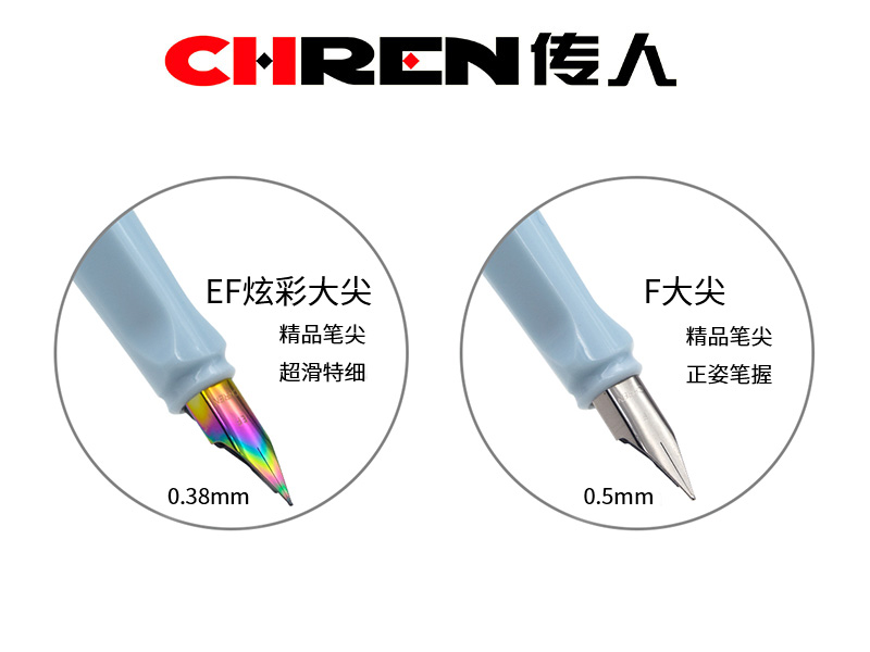 规格:2支EF大尖换囊钢笔+3支可替墨囊(2蓝+1黑)+1支加长转印墨囊(笔杆内)。