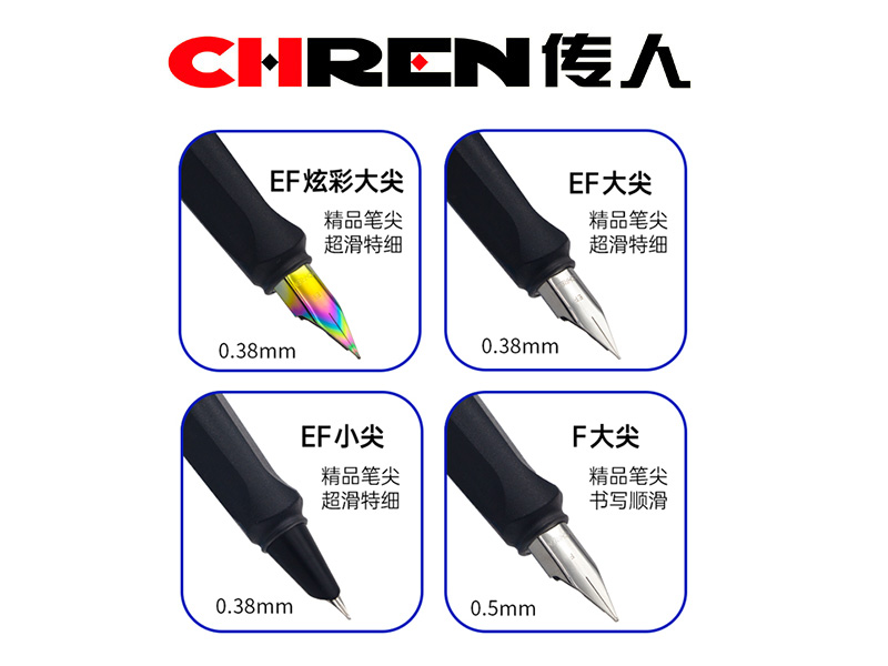 3. 每小盒内含2支EF大尖换囊钢笔+2支EF小尖换囊钢笔+1支F大尖换囊钢笔+4支可替墨囊(笔杆内)+1支抽墨器(笔杆内)。