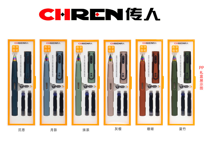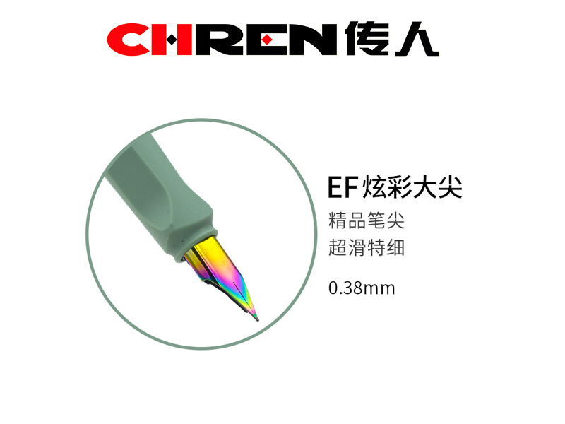 3. 每小盒内含1支EF大尖换囊钢笔+2支可替墨囊(1黑1蓝,通用3.4mm口径)。