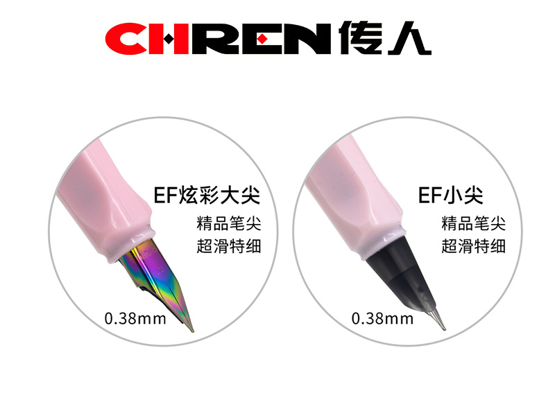规格:1支EF炫彩大尖换囊钢笔+1支EF小尖换囊钢笔+2支可替墨囊。