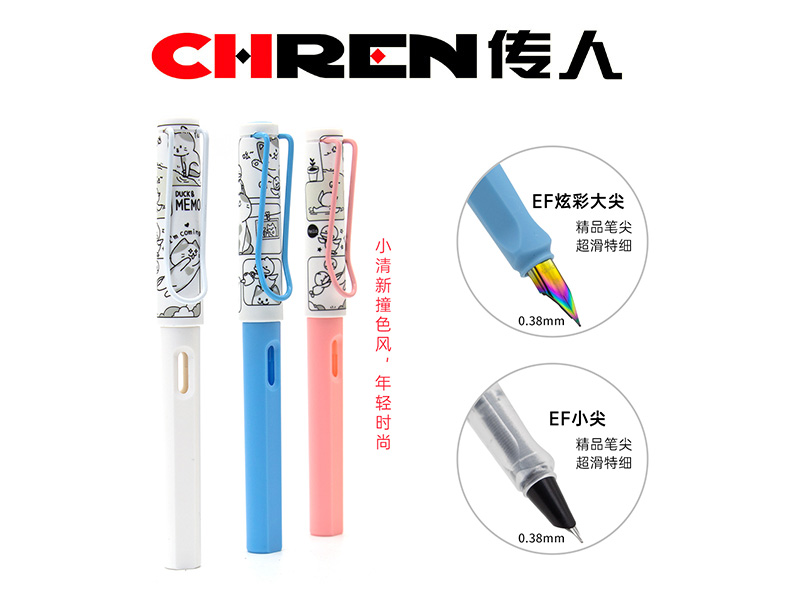 规格:1支EF炫彩大尖换囊钢笔+1支EF小尖换囊钢笔+2支可替墨囊。
