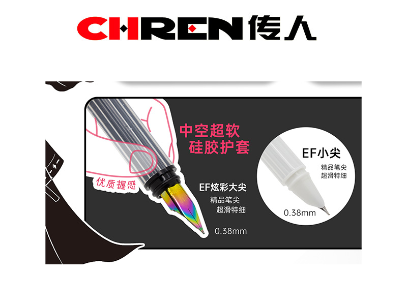 规格:1支EF炫彩大尖换囊钢笔+1支EF小尖换囊钢笔+4支可替墨囊。