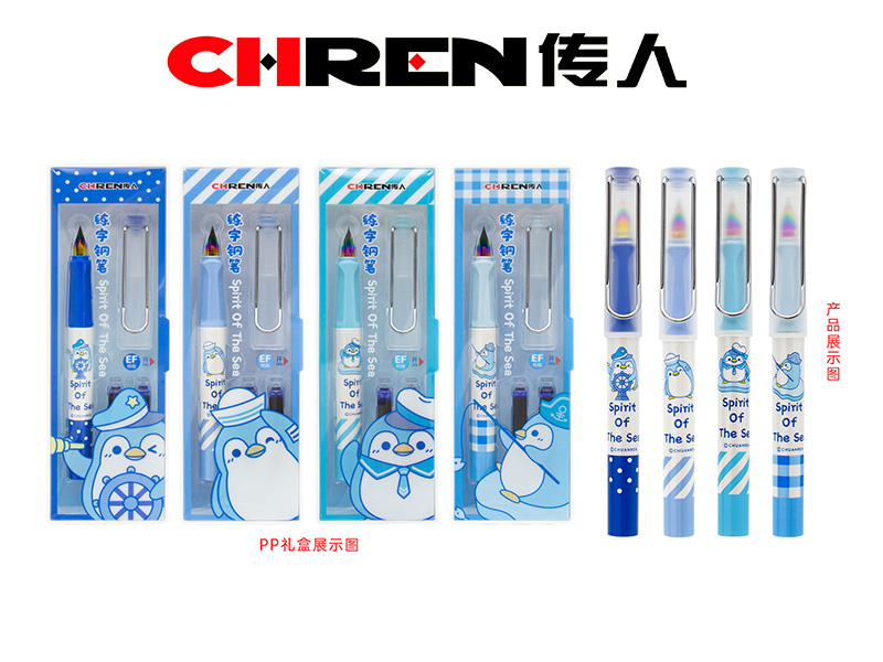 2. 蓝色精灵海洋主题,萌趣可爱,增加书写乐趣;钢笔采用清爽的蓝色系配色,色彩层次丰富,协调统一;正姿笔握,更符合人的书写需求,有助于矫正握笔姿势,是练字的好选择。