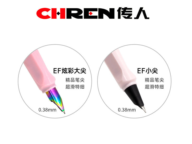 规格:1支EF炫彩大尖换囊钢笔+1支EF小尖换囊钢笔+2支可替墨囊(笔杆内)
