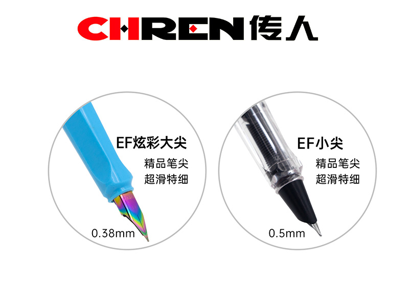 规格:1支EF炫彩大尖换囊钢笔+1支EF小尖换囊钢笔+2支可替墨囊。