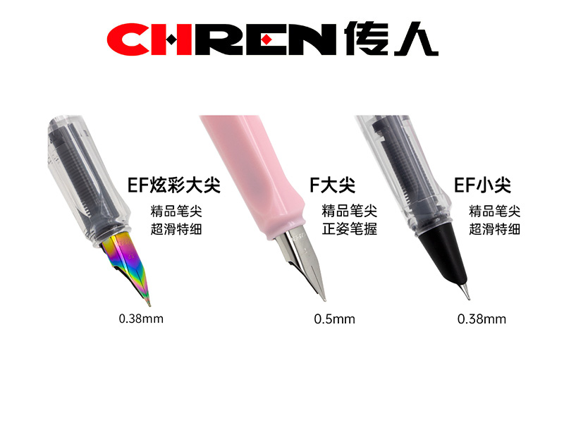 规格:1支EF炫彩大尖换囊钢笔+1支F大尖换囊钢笔+1支EF小尖换囊钢笔+1支抽墨器+3支可替墨囊。