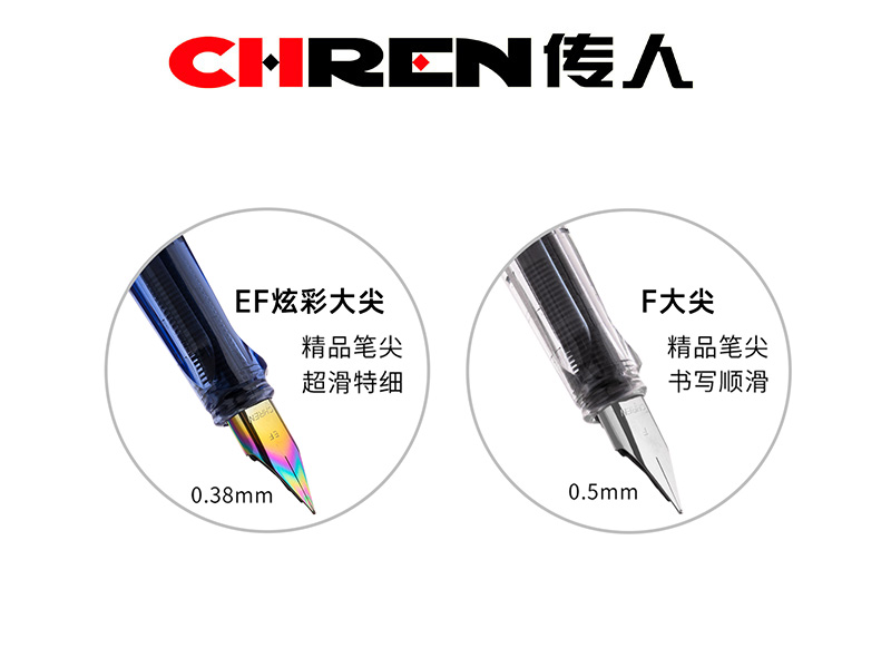 规格:1支EF炫彩大尖换囊钢笔+1支F大尖换囊钢笔+3支可替墨囊(2蓝+1黑)
