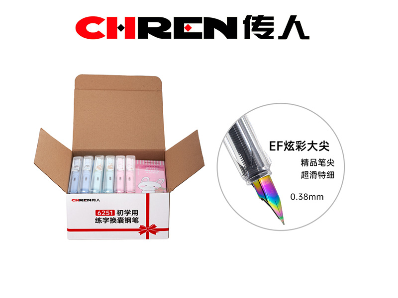 规格:1支EF炫彩大尖换囊钢笔 + 1支可替墨囊(笔杆内)