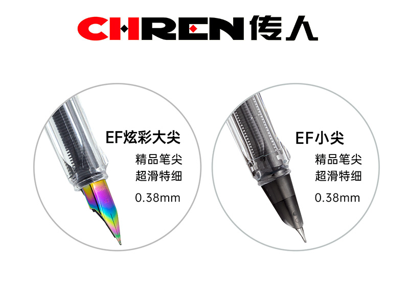 规 格:1支EF炫彩大尖换囊钢笔 + 1支EF小尖换囊钢笔+2支可替墨囊。