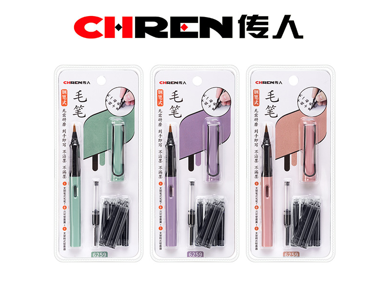 产品特点:钢笔式换囊毛笔,无需研磨,到手即写,不沾墨、不漏墨;配备6支墨囊,墨量充足,可满足更持久的书写需求。