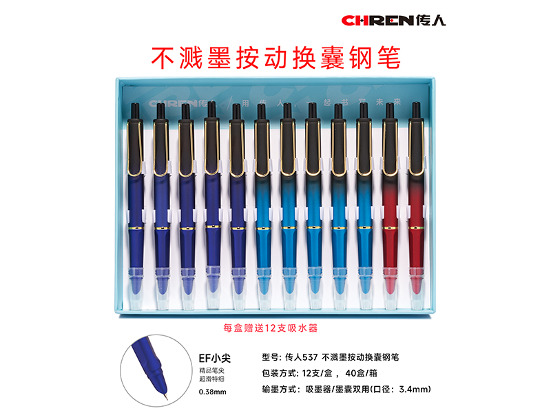 不溅墨按动换囊钢笔