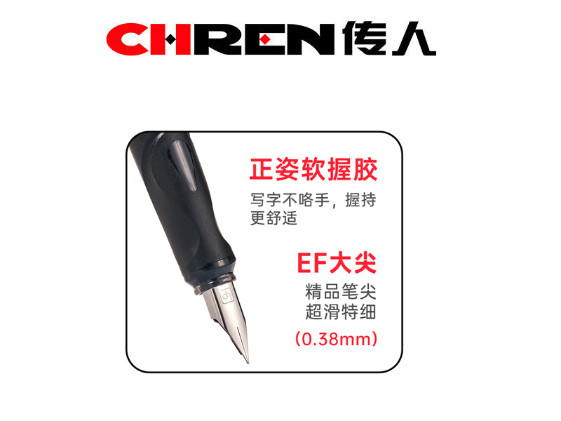 介绍:1:全新创意展架包装,更好的展示全新高透立体礼盒,共四色可选。2:这是一款神奇的热敏可擦钢笔,笔尾配备可擦橡皮头,写错就改,轻松擦拭,干净无痕;亮黑UV外观配烫印炫彩镭射文字,简约时尚,炫彩美观;赠送一支润笔器,写前润一润,以便更好书写。”传人乐握”正姿软胶笔握,握持舒适,有助于矫正握笔姿势,是学生练字的好选择。3:每小盒内含一支EF 大尖换囊钢笔+1支润笔器+2支热敏可擦替换墨囊(通用3.4mm)