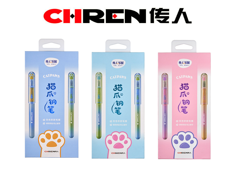 产品特点:精美猫爪钢笔礼盒,原创笔款,萌趣可爱炫彩珠光渐变外观,光线流转间呈现梦幻光泽;正姿双色软握,久写不累手,握笔不打滑,有助于矫正握姿,是学生练字的好选择;创新包装,适用于礼品和超市销售。