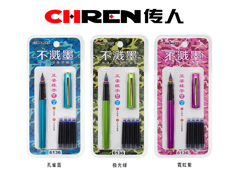 笔款简约,配色经典。金属喷漆,提升钢笔质感;正姿笔握,有效矫正握笔姿势,是学生练字的好选择。